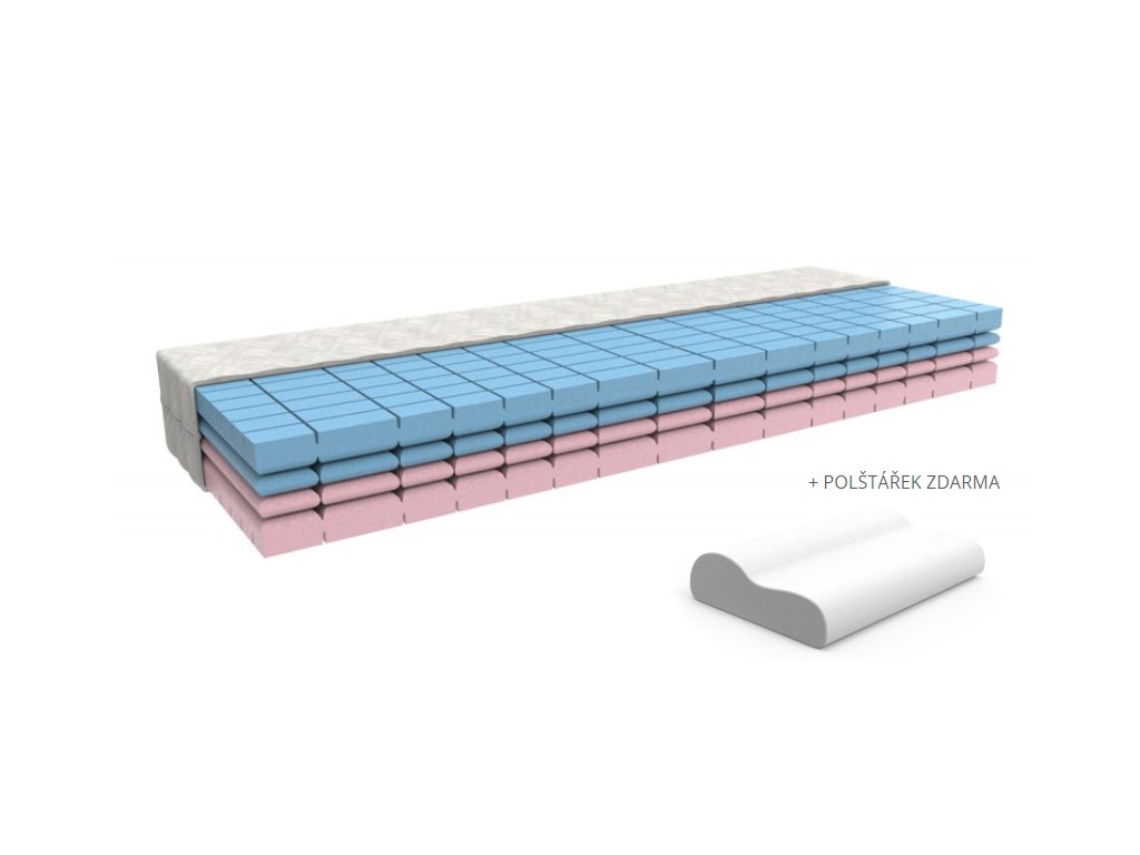 Matrace Marina s nosností 120 kg a výškou 18 cm vám konečně zajistí spánek, o kterém sníte, protože kromě jiného dokáže ulevit od bolestí zad, například ze sedavého zaměstnání. Je totiž inovativní, složená z plátů studené pěny profilovaných do "pěnových pružin", které se skvěle přizpůsobí vašemu tělu a také zajistí prodyšnost. Matrace Marina rozloží hmotnost vašeho těla podle 5 anatomických zón - pro hlavu a krk, ramena, boky a střední část těla, kolena a stehna, lýtka a chodidla. Určitě vyzkoušejte pohodlí, které nabízí. Vyberte si k ní libovolný potah a uložte ji na rošt či pevnou podložku.